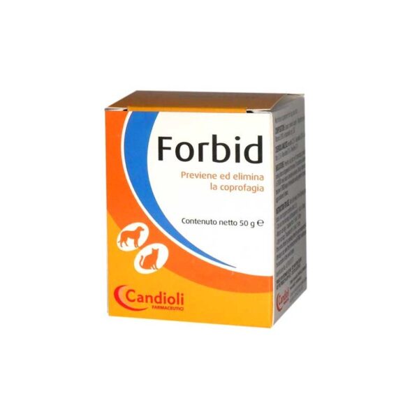 FORBID juntamente com o alimento confere às fezes um sabor extremamente desagradável, originando uma redução do comportamento (coprofagia) em animais sujeitos ao tratamento.
