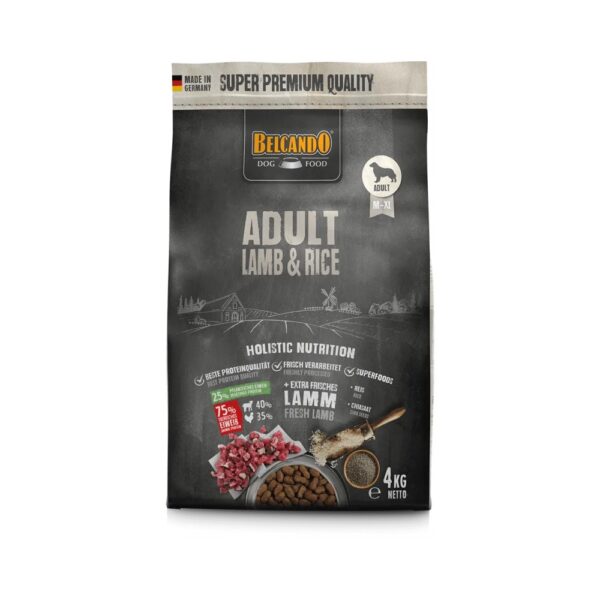Uma seleção cuidadosa das matérias-primas, bastante carne de aves, batatas e farinha de grainha de uva obtida a frio conferem ao BELCANDO® Adult Dinner a combinação de nutrientes ideal para o cão adulto. O teor reduzido de proteínas e gordura está ajustado às necessidades de cães com uma atividade normal. Se for dada uma quantidade adequada, o peso mantém-se constante com um nível de saciedade adequado.