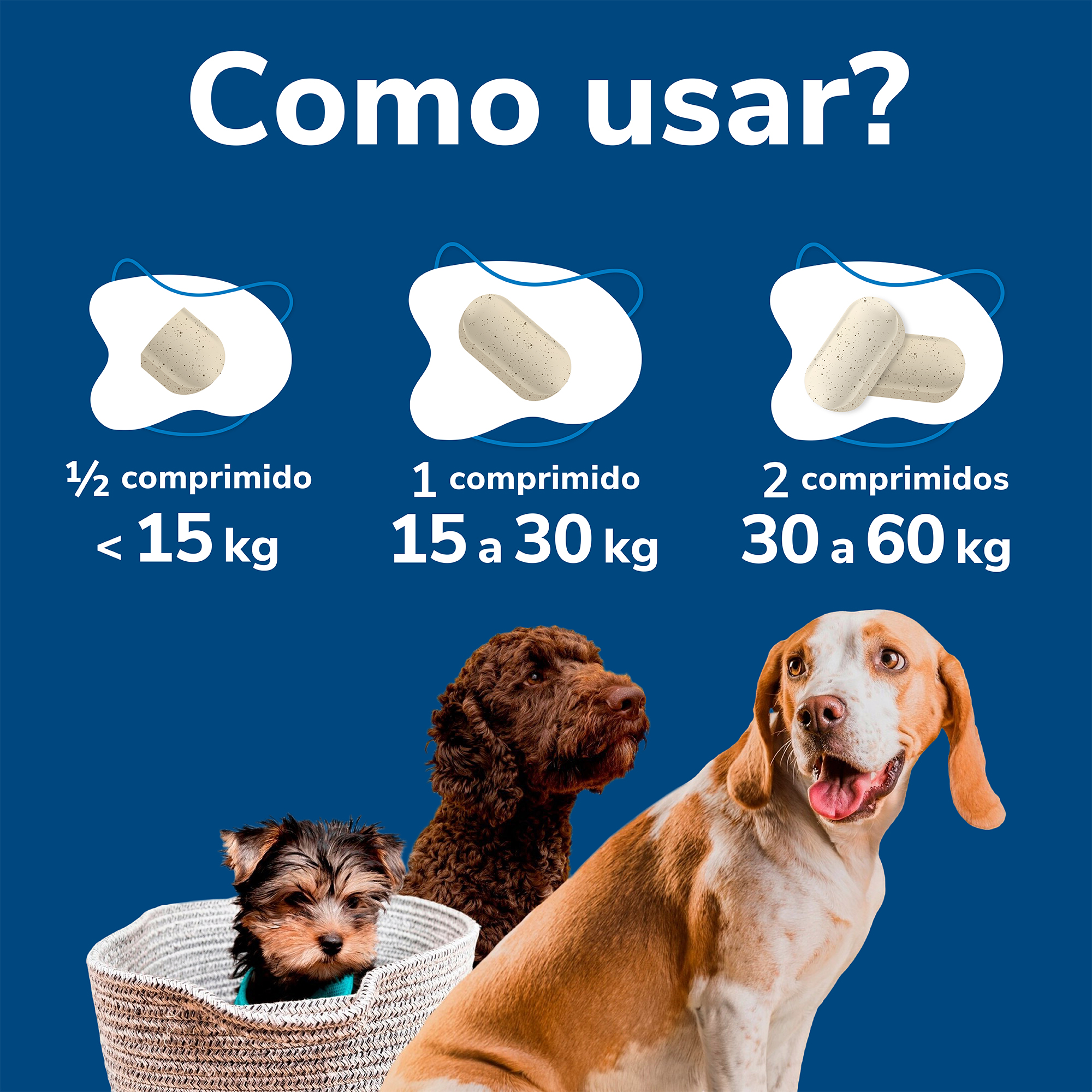Caixas de 120 comprimidos palatáveis divisíveis em duas partes iguais.Principais benefícios