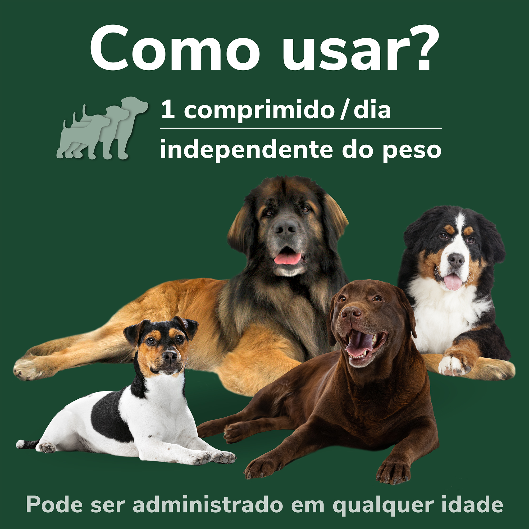 Toma única diária de 1 comprimido por cão, independente do tamanho, com ou sem alimento, durante 60 dias.