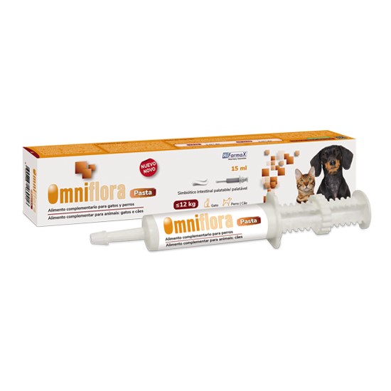 Omniflora pasta Gato e cão ≤ 12 kg: seringa de 15 ml de pasta palatável.