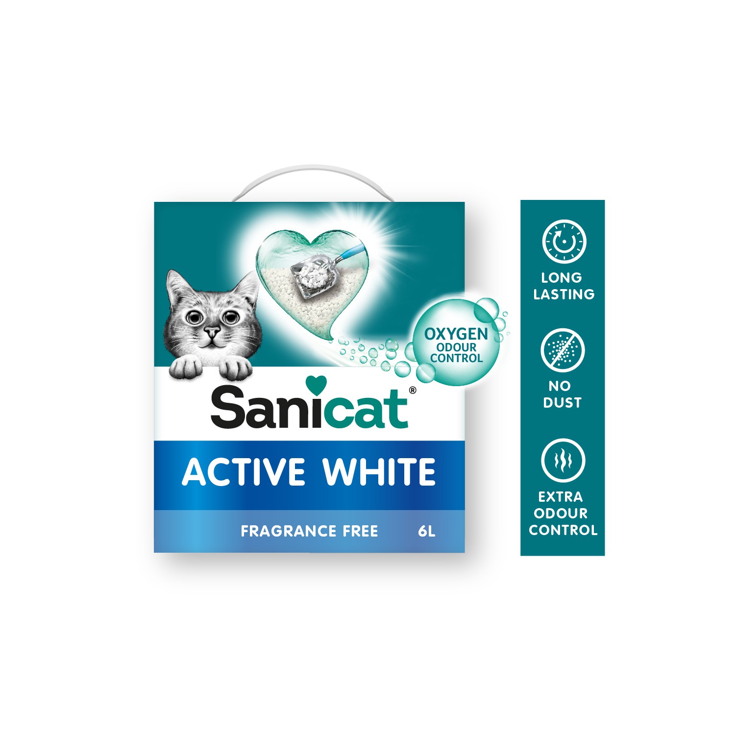 A Sanicat Active White é a areia ultra aglomerante que elimina de forma natural e eficiente os odores desagradáveis para que consiga uma higiene superior em casa. Está composta de bentonita branca, que absorve a urina rapidamente e gera aglomerados duros e fáceis de retirar da caixa de areia.
